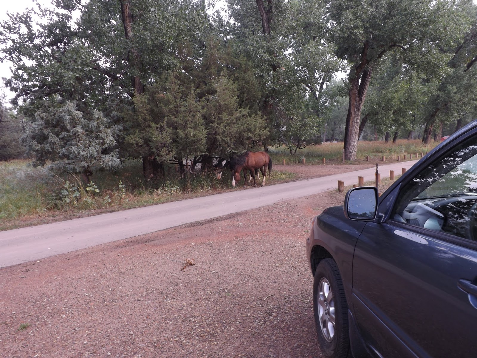 So I slept in a wet tent and left after having good coffee and a decent breakfast. I thought I would be the only person who left this Park and didn't see any wildlife, when two wild ponies grazed down the other side of the road. Most of the CG was still asleep at that time.